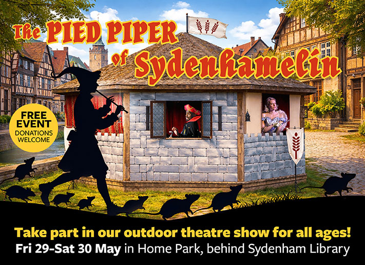 Original and highly entertaining musical theatre shows for families with children of all ages – Upstairs at the Sydenham Centre, and outdoors on Sydenham greens during the summer.