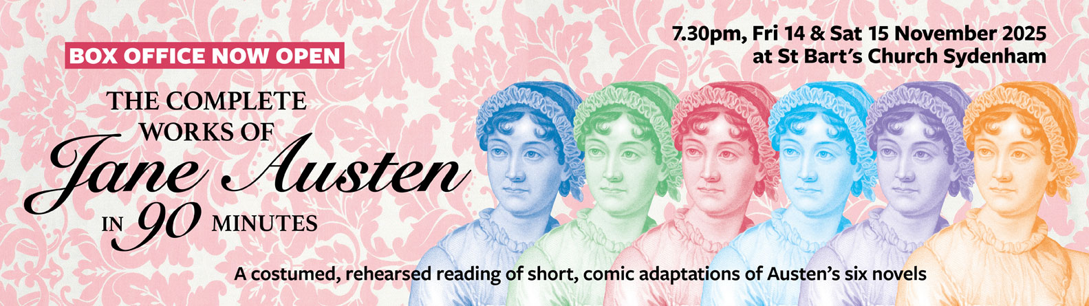 Performed script-in-hand by a professional cast, Austen’s famous stories are faithfully retold by Sydenham-based theatre company Spontaneous Productions as you’ve never seen them before. Expect a comically condensed, whirlwind celebration of her entire work adapted especially for a 21st century audience. With much switching of bonnets!